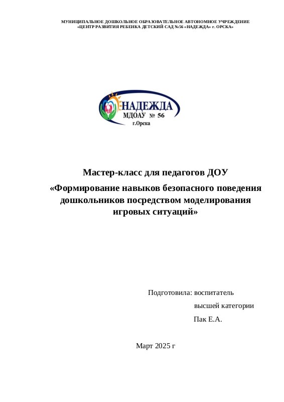 «Формирование навыков безопасного поведения дошкольников посредством моделирования игровых ситуаций»