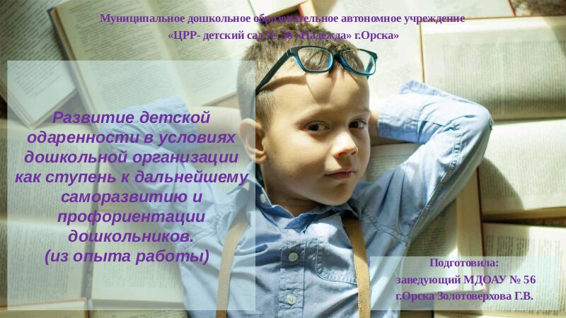 Презентация к выступлению по проблеме: "Развитие детской одаренности в условиях дошкольной организации как ступень к дальнейшему саморазвитию и профориентации дошкольников."