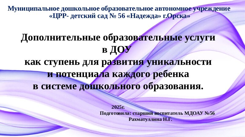 Подготовила : ст.воспитатель МДОАУ № 56 Рахматуллина Н.Г.