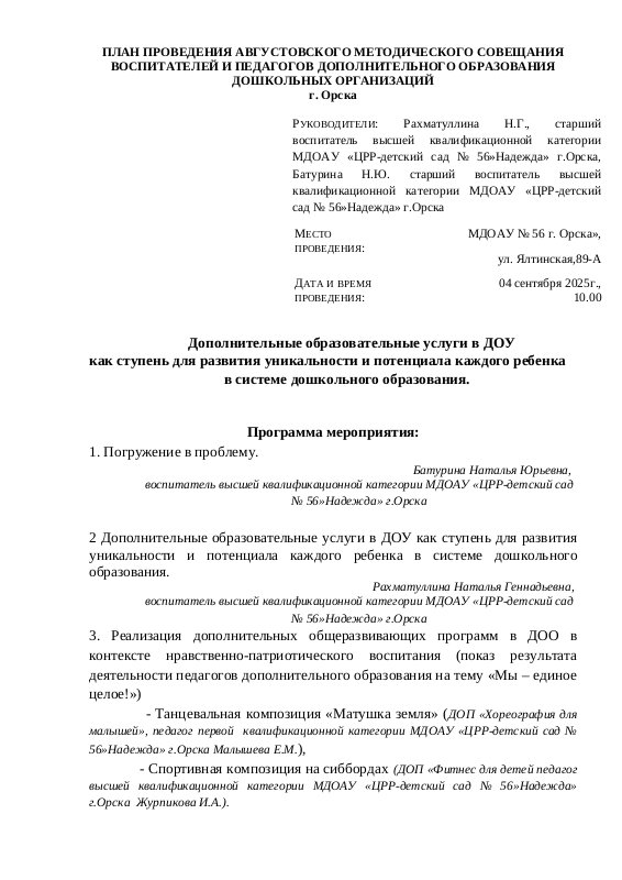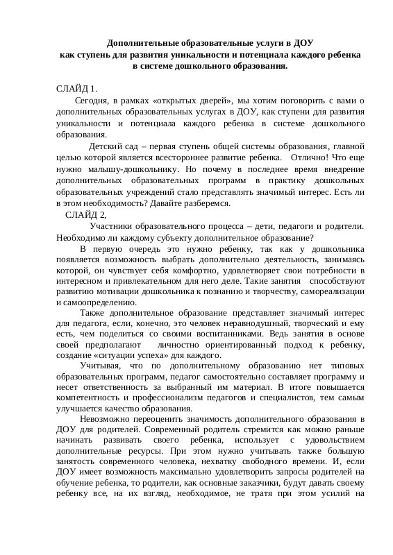 Выступление по проблеме: "Дополнительные образовательные услуги в ДОУ как ступень для развития уникальности и потенциала каждого ребенка в системе дошкольного образования."